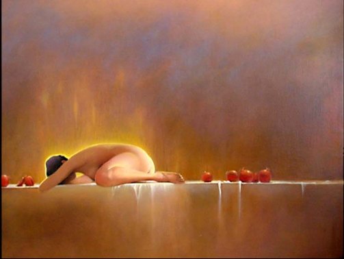 ![]() "Escape" - oil on canvas 50 x 76 cm "I am concerned with the formation of form; with capturing our unfocused awareness of light, life and energy; with the dimly perceived field